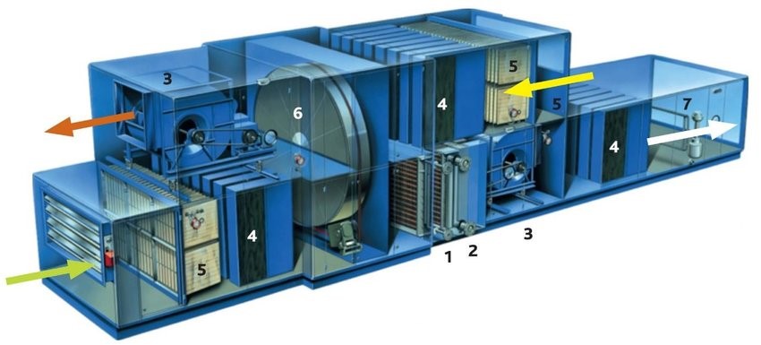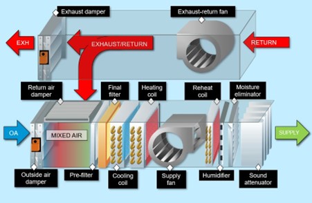 یک واحد انتقال هوا به طور کلی در محفظه خود یک فیلتر، رطوبت ساز، دمنده (پنکه) و مبدل حرارتی (پره) دارد. هیچ مکانیزم پیچیده ای وجود ندارد و سیستم بسیار ساده است.